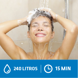 Dica: É possível economizar até 160 litros se o banho for tomado com a torneira fechada enquanto se ensaboa. Além disso, reduza o banho de 15 para 5 minutos.